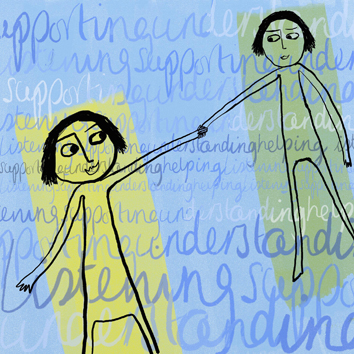 No reducimos la salud mental únicamente a una cuestión individual, sino que tratamos de incluir en nuestra visión las relaciones humanas y sociales. Del mismo modo, consideramos que promover la salud mental va más allá de tener un diagnóstico, e implica aprender a cuidarnos entre nosotros/as de forma cotidiana.